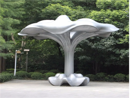 異型花朵采用工廠預(yù)制,現(xiàn)場(chǎng)組裝的施工工藝,表面做銀色氟碳噴涂處理